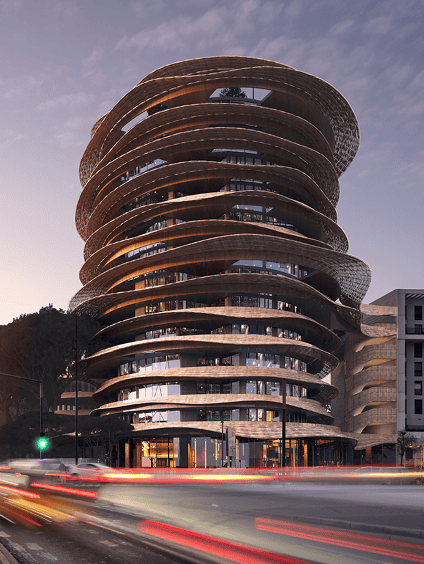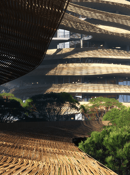 Avec son projet Oasis, lauréat du concours des ‘Folies architecturales‘ de Montpellier, l’agence d’architecture et d’urbanisme Coldefy « signe une ode à la créativité, une forme urbaine unique inspirée de la nature ». Sur les hauteurs de Montpellier, dans le quartier Ovalie, à proximité du stade de rugby GGL, Coldefy a conçu avec Oasis un projet d’envergure autour de deux bâtiments (l’un de logements, l’autre de bureaux) aux formes ondulantes, surmontés de parasols bioclimatiques en bambou, se faisant face et reliés par une passerelle.