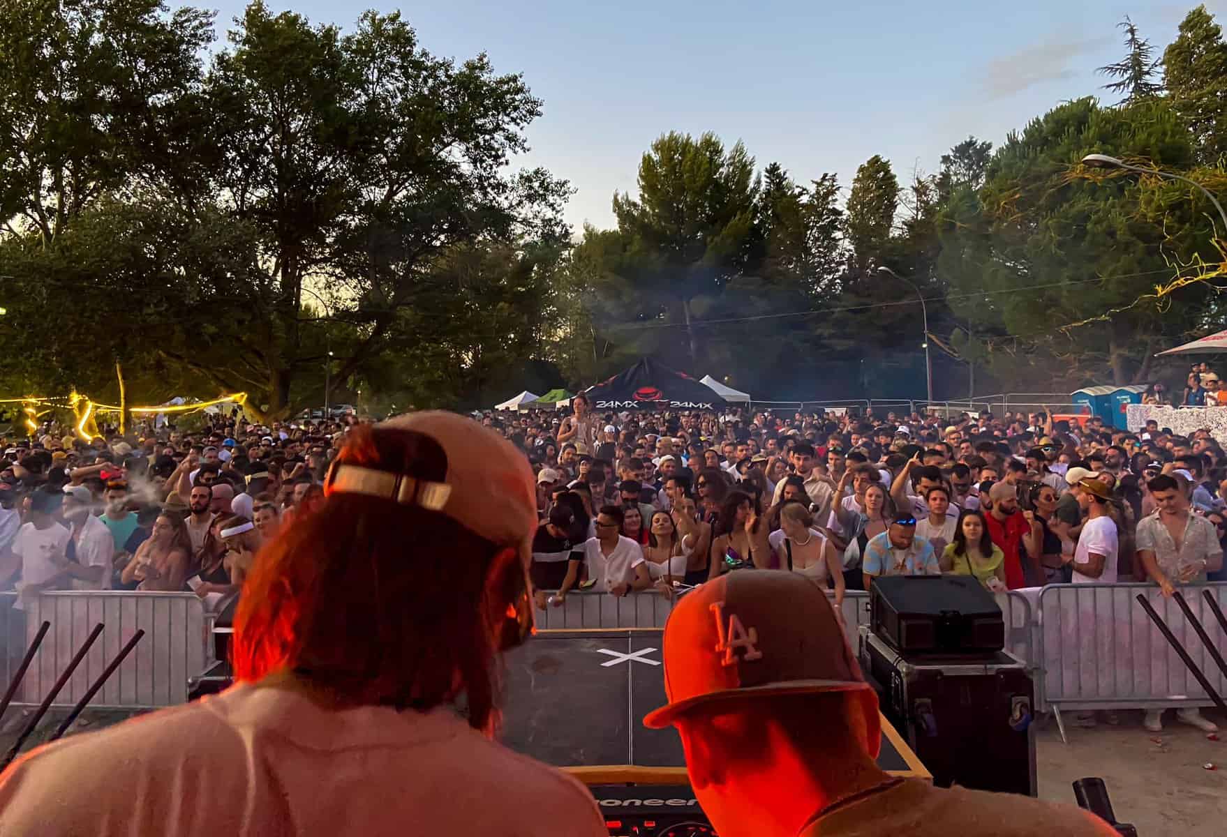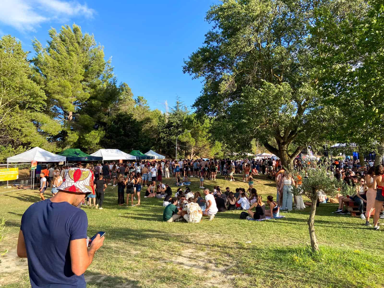 En fin d’après-midi, aux alentours de 18h, ils étaient déjà des centaines de personnes attroupées, devant la scène du festival, à chanter et danser sur les mix proposés par les DJs. Crédit : InfOccitanie