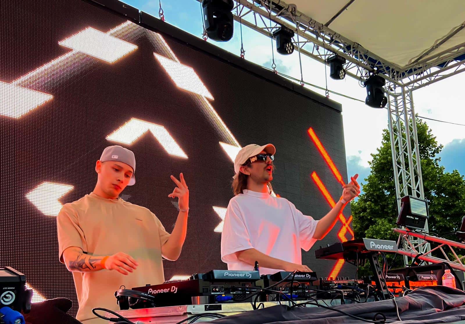 Les deux DJs, étoiles montantes de la bass, ont accompagné les festivaliers jusqu’à la tombée de la nuit, avec des mix plus entraînants les uns que les autres. Crédit : InfOccitanie