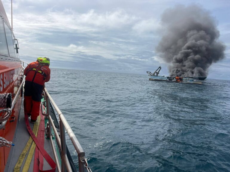 Un incendie spectaculaire s’est produit au large de Sète ce lundi 9 mars. Un chalutier a pris feu en pleine mer à 11 milles nautiques au sud de Sète, aux alentours de 12h15. Trois marins se trouvaient à son bord.