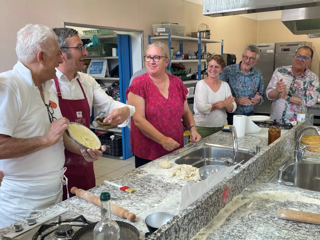 Carlo Avallone, tielliste renommé, est venu en visite à Frontignan la Peyrade, du 14 au 17 mai 2024. Il y a formé 4 volontaires de l’Espace de vie sociale (EVS) au sein des cuisines du Lycée d’Enseignement Agricole Privé Maurice-Clavel en vue de la fête de la Mer. La manifestation se déroulera le dimanche 28 juillet 2024 et proposera à tous les habitants une dégustation de produits italiens.