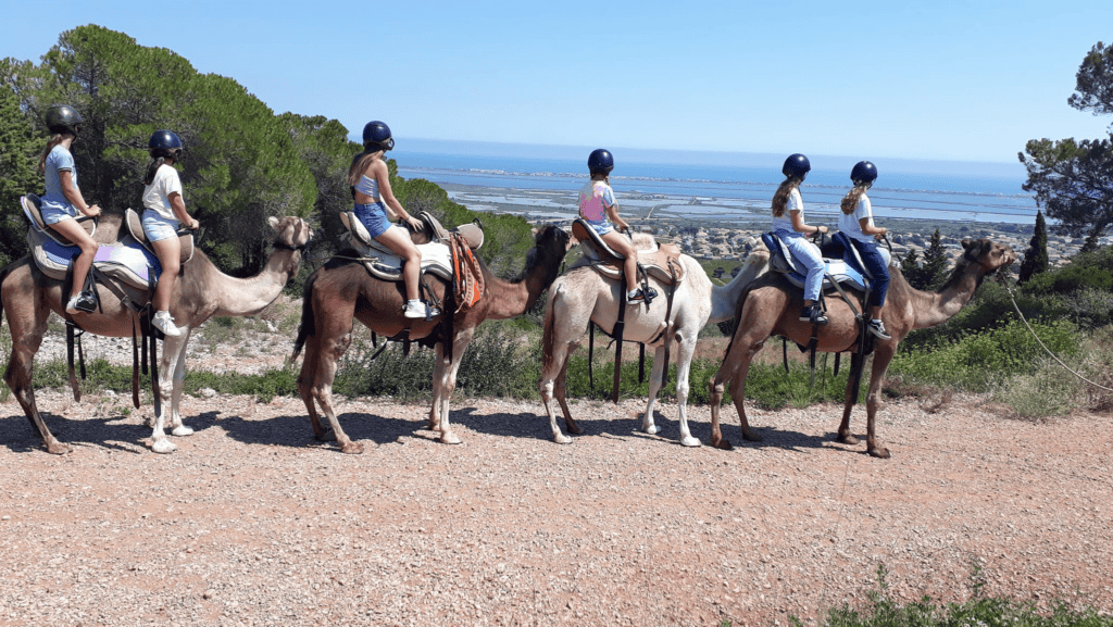 L’exploitation propose le circuit du parcours de santé de la ville de Frontignan, offrant des points de vue exceptionnels sur la mer, le bois des Aresquiers, les salins, les étangs et les vignobles réputés du muscat. « Nous sommes deux guides pour vous accompagner et vous guider durant cette balade qui vous apprendra beaucoup sur les dromadaires et sur notre belle région », indique Coralie Le Meur.