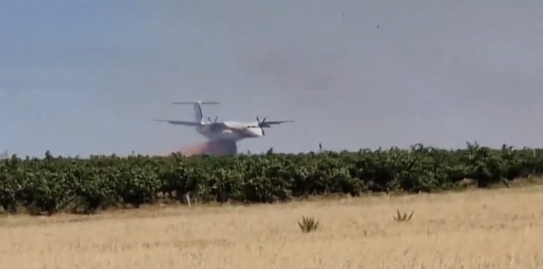 Un feu de végétation de type « herbes basses »est en cours, ce dimanche 30 juillet, sur la commune de Cers, au Sud de Béziers dans l’Hérault. Un Dash, cet avion de la Sécurité Civile chargé en produit retardant, a largué rapidement devant la tête de feu afin de ralentir la progression des flammes.