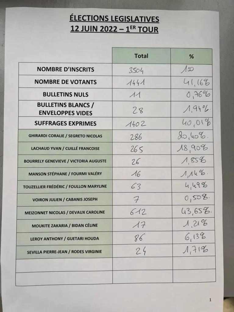 Uchaud (30) : Meizonnet Nicolas – Devaux Caroline 43,65%.