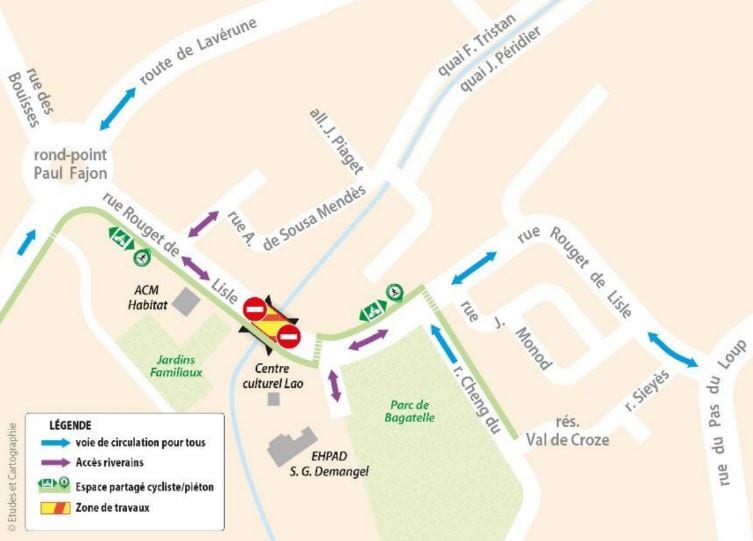 Par conséquent, la rue Rouget de Lisle sera partiellement fermée pour permettre la réalisation des travaux. concernant la ligne 5 de tramway Afin de garantir l’accès aux riverains, la circulation sera réorganisée en double-sens de part et d’autre du pont pendant cette période spécifique. Les itinéraires dédiés aux cycles et aux piétons seront préservés.