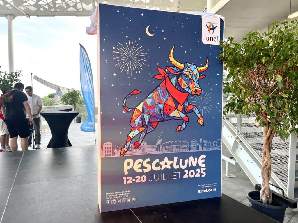 Devant des centaines de convives, l’affiche 2025 a été dévoilée sous les applaudissements. Un fond bleu qui appelle à l’évasion, reprenant les halles de Lunel et ses incontournables arènes. Au centre, un taureau magistral, emblématique, paré de mille couleurs. Chaque année, la Pescalune rassemble des milliers de festaires. Les produits dérivés (éventail, chapeau, traditionnel foulard…) sont à retrouver à l’espace Louis Feuillade, 48 boulevard Lafayette, Lunel. Le programme complet est à retrouver ici.