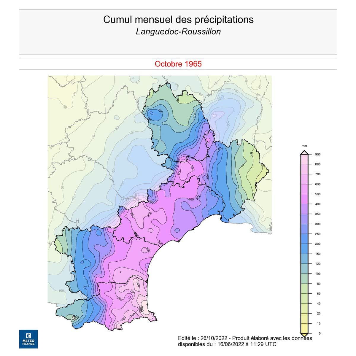 Carte des cumuls de pluie d’Octobre 1965 – Météo France