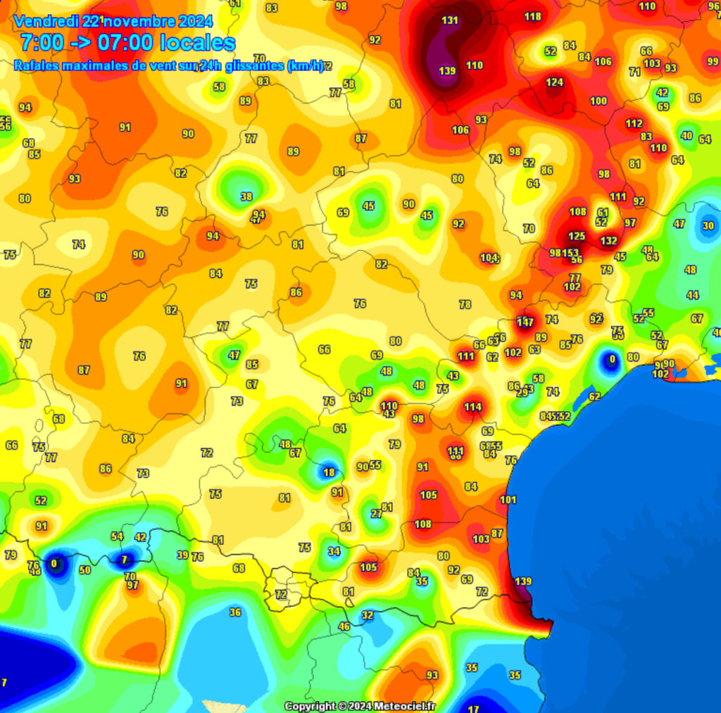 Sans surprise et comme prévu, un coup de vent localement fort a frappé l’Occitanie entre jeudi 21 novembre soir et ce vendredi matin. Des rafales de vent tempétueuses ont secoué plusieurs départements, notamment l’Hérault, la Lozère, le Tarn, l’Aveyron ou encore l’Aude et les Pyrénées-Orientales.