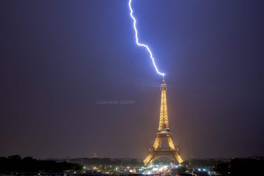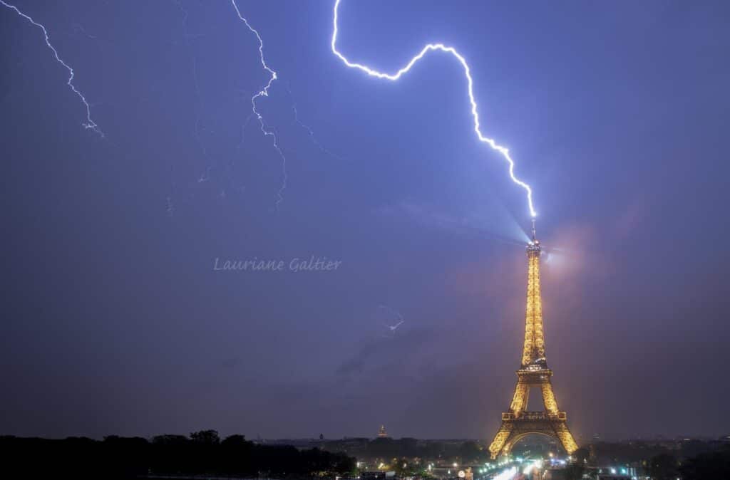 La Tour Eiffel a été frappée à plusieurs reprises par la foudre, lors d’un fort orage qui traversé Paris. En conséquence, le rendu est magnifique. Lauriane Galtier a réussi à immortaliser ce moment de pleine nature dan la capitale !