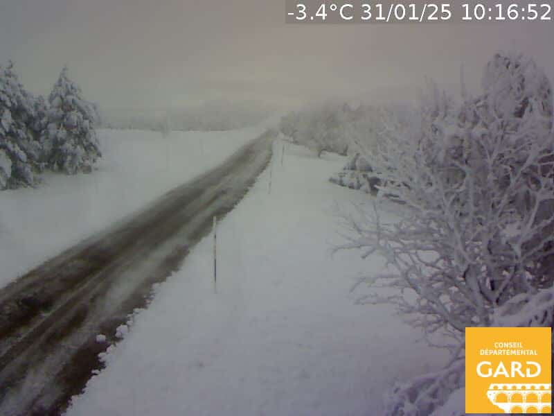 De l’autre côté du versant, il a aussi beaucoup neigé. Au Mas de la Barque, la couche de neige avoisine les 50 cm également. En témoigne les images des webcams des sites inforoute30 et inforoute48. L’accès au Mas est d’ailleurs fermé par la RD362 depuis Génolhac pour le moment. Par Villefort, il est possible d’accéder au Mas de la Barque. En revanche, comme partout en montagne, les équipements spéciaux sont obligatoires et indispensables !