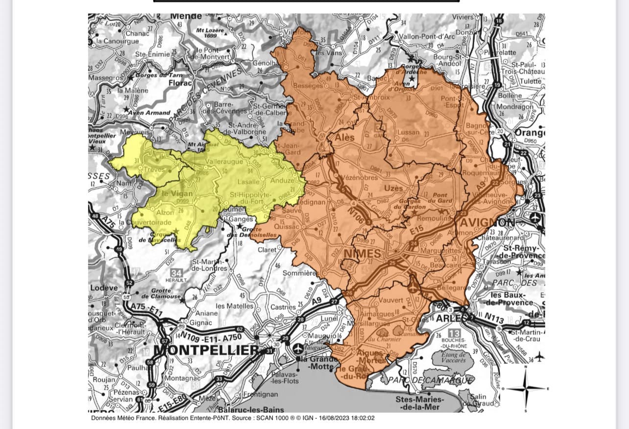 – Danger élevé (orange) : Les conditions météorologiques aggravent significativement le risque de départ et de propagation des feux de forêt et de végétation. Dans certaines zones, le risque peut être localement très élevé.