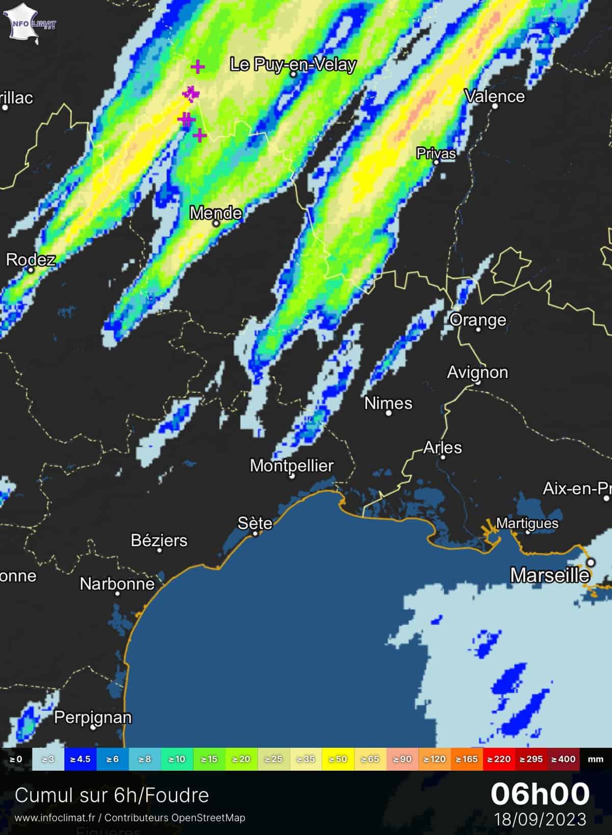 Cumuls de pluie de 00h à 6h00 ce lundi 18 septembre – Carte Infoclimat