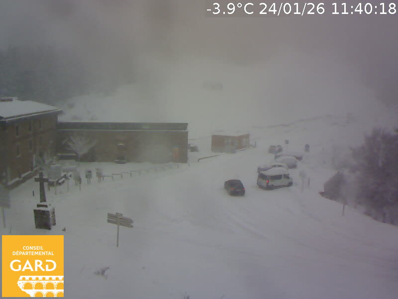La neige tombe fortement en altitude dans le Gard, ce samedi 21 janvier, notamment au niveau de l’Aigoual et sur les stations de ski, comme en témoignent les webcams de surveillance :