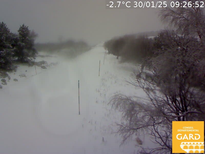 Une couche de neige fraiche de 5 à 10 cm est déjà présente, à 9h30 du matin ce jeudi. On attend, sur la journée, 10 à 20 cm supplémentaires, voire 30 cm sur le sommet du Mont-Lozère. Ainsi, les cumuls totaux de l’épisode neigeux pourraient atteindre les 30 à 40 cm, voire peut-être davantage du côté du Mas de la Barque, près de 50 cm.