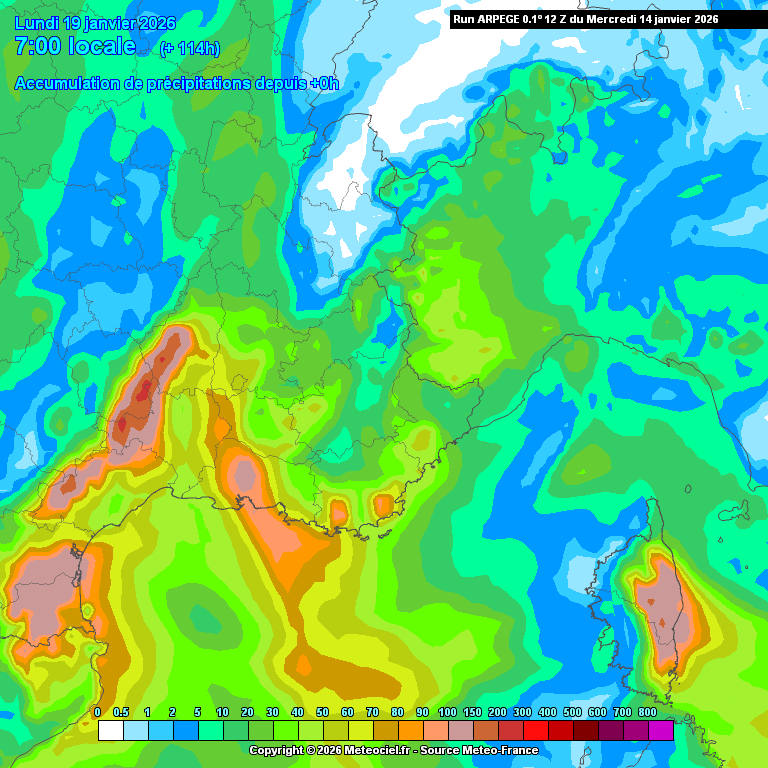Ce week-end, les pluies se renforcent entre la région PACA et les Cévennes pour la journée de samedi, avec des cumuls importants. La neige fait son retour sur les sommets du côté de la Lozère. La limite pluie-neige devrait se situer vers 1400 à 1500 mètres d’altitude. Ainsi, le Mont-Lozère devrait connaître des chutes de neige importantes, peut-être également l’Aigoual mais c’est incertain. Pour la journée du dimanche 18 janvier, l’épisode pluvio-neigeux se décale vers le Roussillon. On attend aussi de fortes pluies en plaine dans l’Aude et les Pyrénées-Orientales. Et de la neige en abondance dans les Pyrénées. Cet épisode de mauvais temps perdurera lundi prochain.