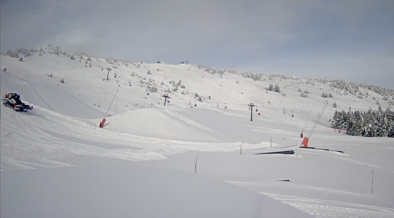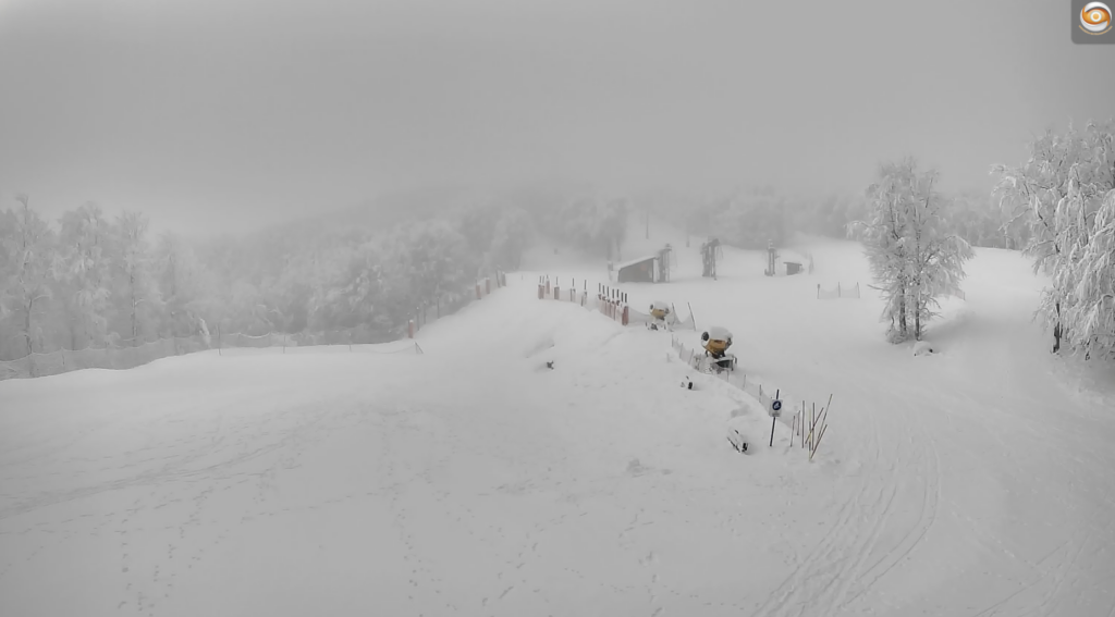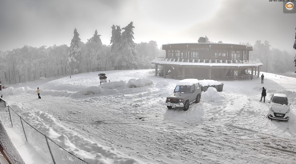 Webcam station Alti Aigoual. Caméra billetterie et départs du ski nordique. Lundi 26 janvier 2026.