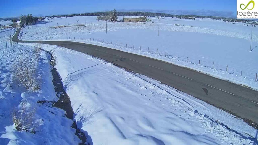 RD989 – La Croix du Fau (Alt. 1268m). Inforoute Lozère, lundi 26 janvier 2026.