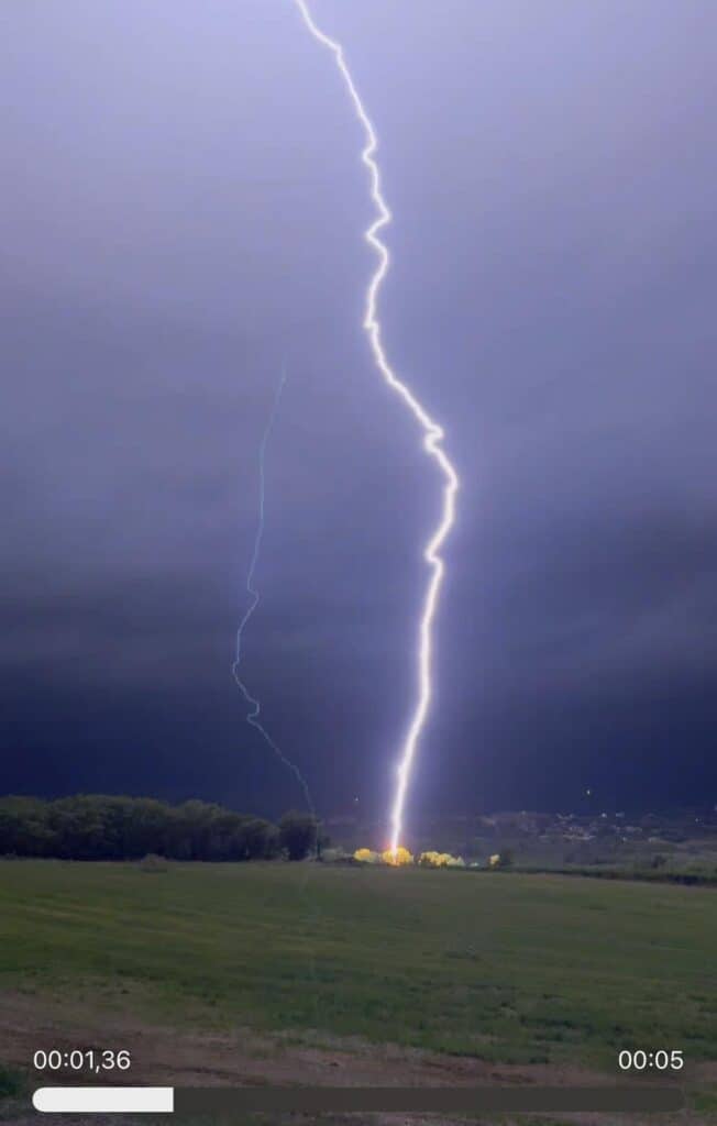 La foudre est tombée à quelques dizaines de mètres de la commune Saint-Maurice-de-Cazevieille dans le Gard. Photo ci dessous : Éléments Déclencheurs – David Guerre Photographies