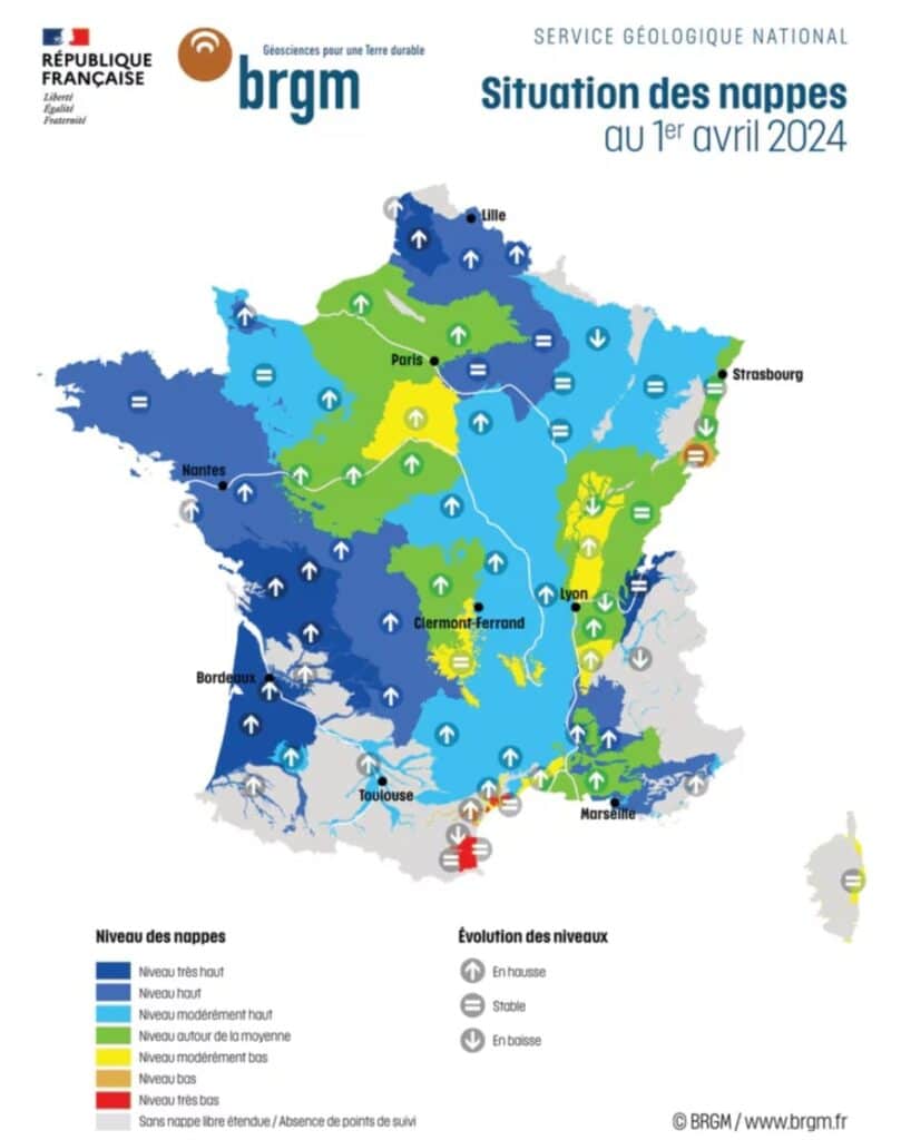 Globalement, l’état des nappes phréatiques est bon sur l’ensemble de la France. Il faut dire que par endroits, des rebords de pluie mensuels pour un mois de mars ont été battus. En région, c’est le cas à Nîmes, où il est tombé près de 250 mm de pluie au cours du mois de mars ! Ce qui a pu rattraper le déficit pluviométrique de l’hiver. Toutefois, il ne faut pas crier victoire trop vite. Les mois de mai et juin seront décisifs quant à la situation de l’été d’un point de vue hydrologie et sécheresse.