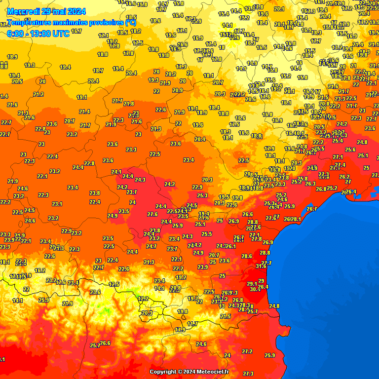 On parle bien de températures relevées à l’ombre, sous abri normalisé, par des stations météorologiques homologuées. Les thermomètres de terrasse, de véhicules ou de pharmacies affichent souvent des valeurs surestimées. Ce mercredi, on peut donc le dire, il fait chaud sur la région ! La chaleur est moins prononcée toutefois sur l’Est du Languedoc, avec plutôt autour des 25°C à 27°C entre Montpellier et Nîmes. Il faut dire que cette chaleur est tant attendue par les locaux et les touristes. Cette année, il est vrai que les journées estivales ont du mal à s’installer.