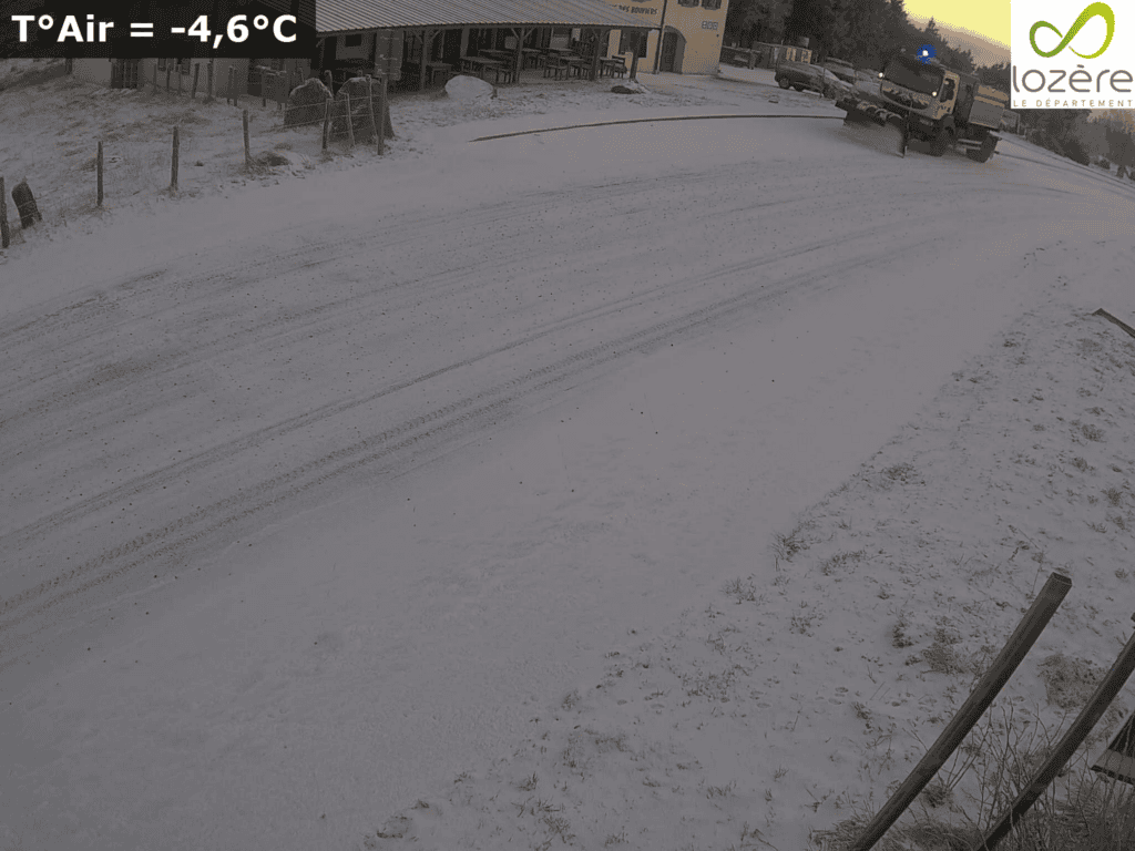 Notez qu’il y a aussi un peu de neige dans le secteur de l’autoroute A75 et sur l’Aubrac en Aveyron. Ainsi que sur les hauteurs de l’Hérault et du Tarn, vers la Montagne-Noire et Lacaune. Côté ciel, amélioration ce dimanche avec le retour d’un soleil plutôt généreux dans les Languedoc. En revanche, dans les Pyrénées, des chutes de neige sont attendues. Ci-dessous, quelques images des différentes webcams disponibles sur le site de la station de ski Alti Aigoual, du Mont-Lozère et sur Inforoute30 et Inforoute48.fr.