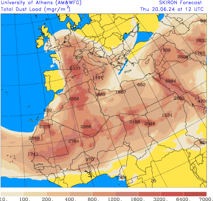 Simultanément, un nuage de sable du Sahara remontera sur notre région et plus largement en France, dès mercredi. Les poussières désertiques seront très épaisses, particulièrement pour la journée du jeudi 20 juin. Il va donc y avoir de nouvelles pluies sableuses sur la région !