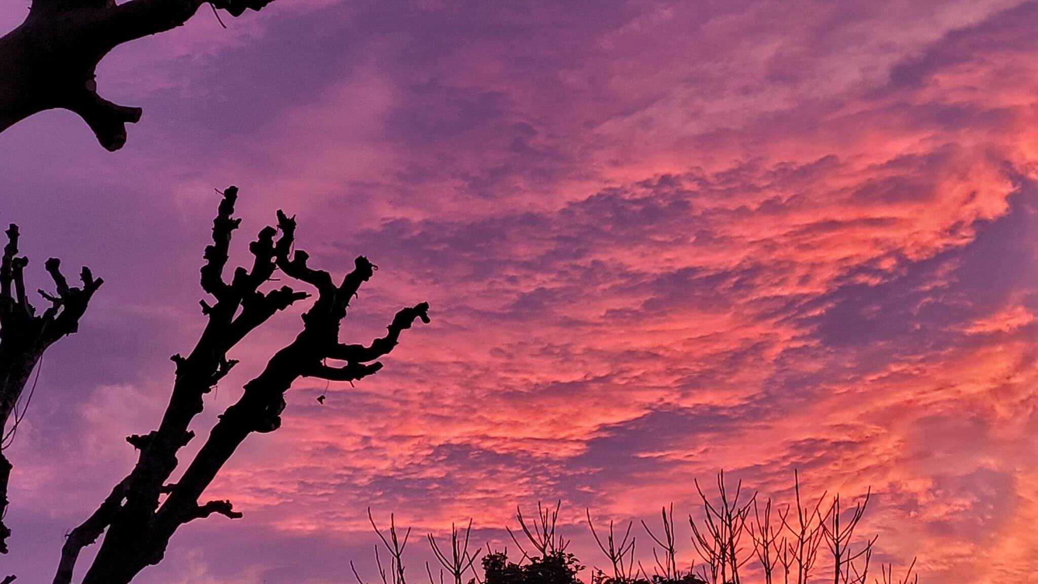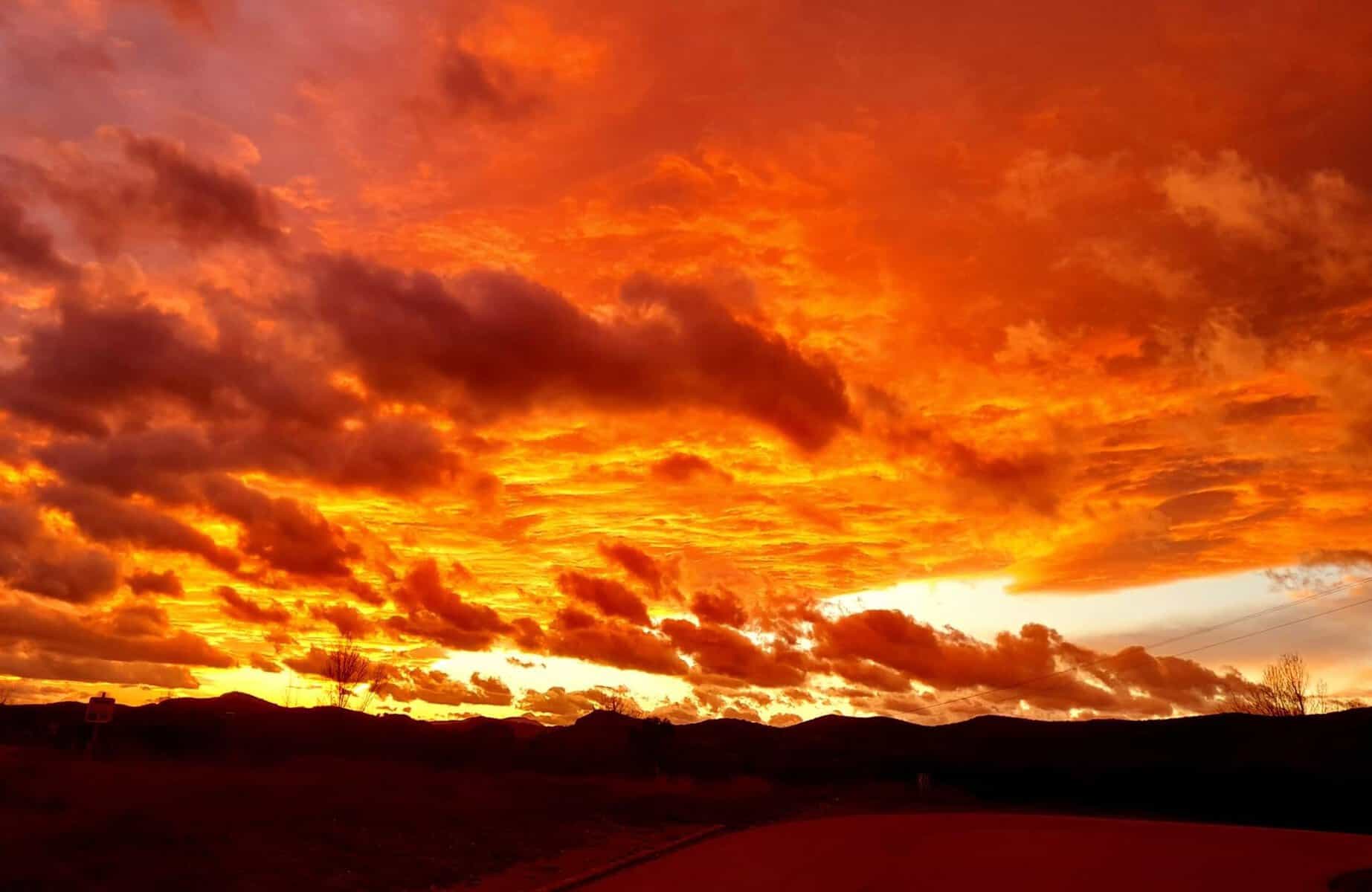 Un phénomène météorologique et visuel tout à fait normal et pas si rare. Ces couleurs sont obtenues souvent quand il y a la présence de passages nuageux d’altitude, au moment du coucher et du lever du soleil. C’est à ce moment là que lumière solaire parcoure un trajet important dans l’atmosphère.