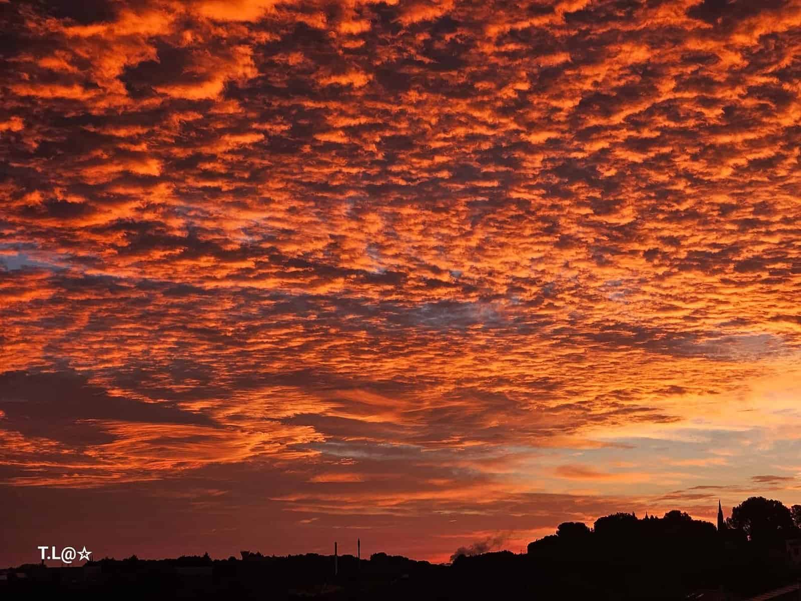 Ce vendredi 24 novembre, le ciel était en feu ! Le phénomène se produit régulièrement depuis quelques jours. En effet, le fort vent qui souffle facilite l’observation de ce « ciel de feu », aussi bien au lever du jour qu’au moment du coucher du soleil.