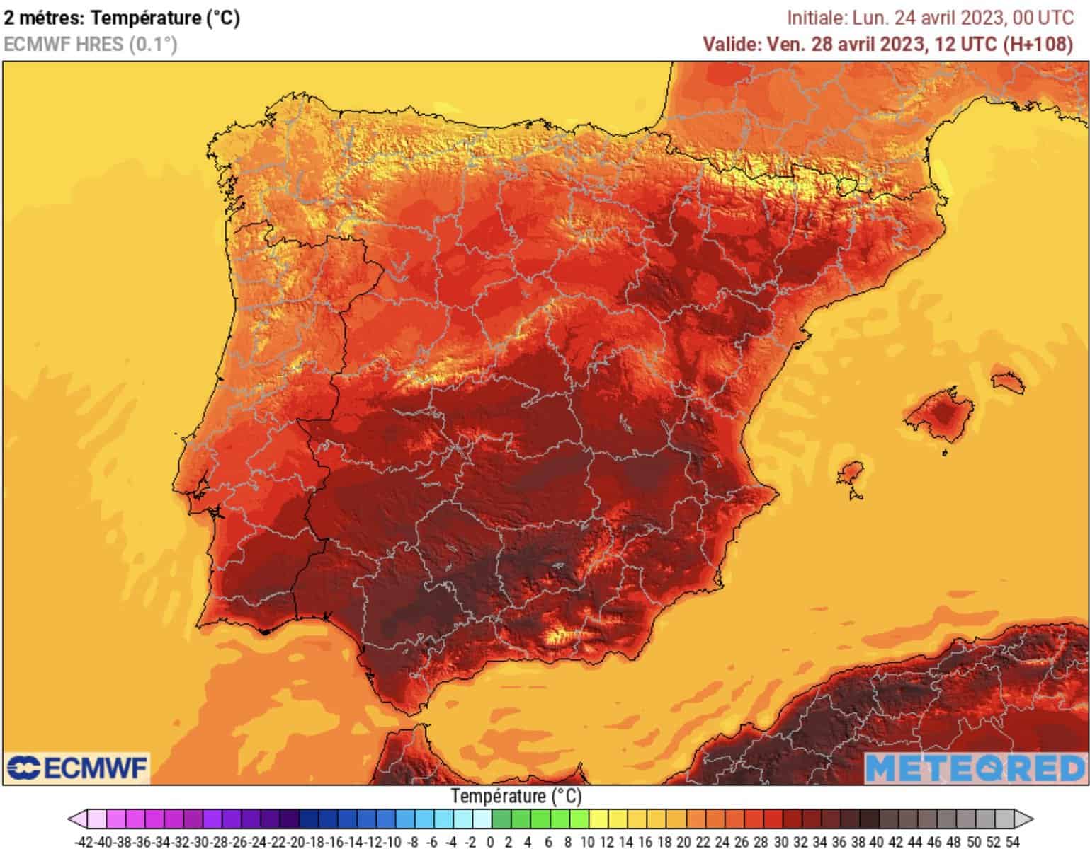 Une véritable canicule en plein mois d’avril. Les températures atteindront de 35°C à 40°C dans bon nombres de régions espagnoles. Il est attendu jusqu’à 41°C sous abri dans la vallée du Guadalquivir, ce vendredi 28 avril 2023. De telles valeurs sont inédites en cette période de l’année.