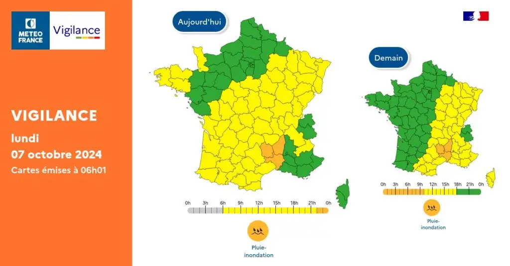 Les services de Météo-France viennent de placer plusieurs départements en vigilance orange pluie-inondation. Il sagit du Gard, de la Lozère et de l’Ardèche. L’Hérault reste en vigilance jaune pour le moment. En effet, un épisode cévenol va débuter dans les prochaines heures, comme prévu depuis plusieurs jours sur InfOccitanie. Cet épisode va surtout se renforcer dans la nuit de lundi à mardi et ce mardi 8 octobre au petit matin. On surveille le passage d’une ligne pluvio-orageuse peu mobile en plaine mardi matin, entre l’Est de l’Hérault et surtout les plaines du Gard.
