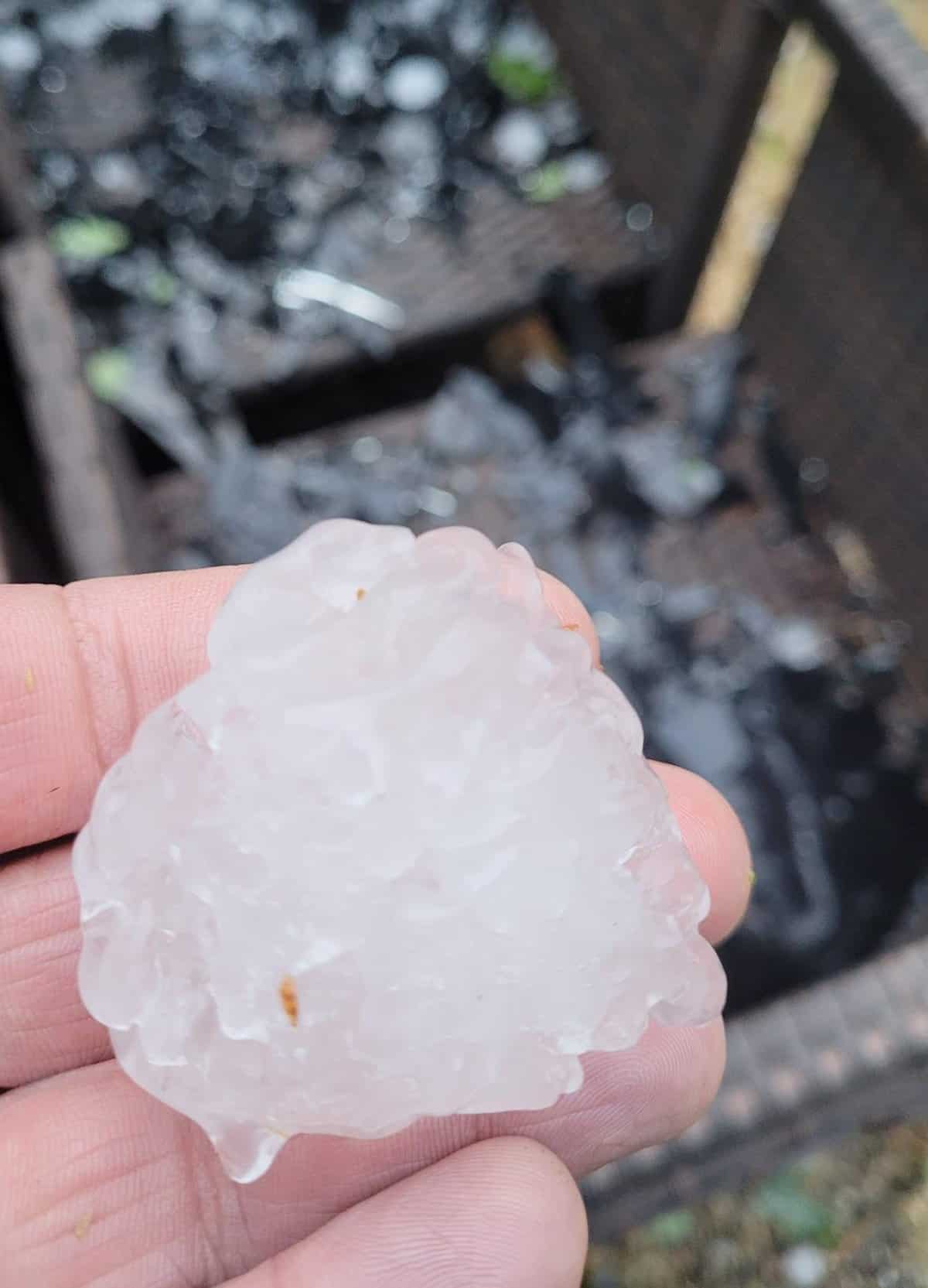 Grêlons de 4 à 5 cm de diamètre à Saint-Amans (12) – Photo Frederic Barthe via Météo Sud Aveyron