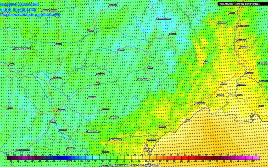 La nuit prochaine, le vent faiblit, le ciel est dégagé et par conséquent le mercure va fortement s’abaisser. Entre les départements de la Haute-Garonne, du Tarn, de l’Aveyron et de la Lozère, des gelées sont possibles. Les températures afficheront seulement de 4°C à 0°C au petit matin ce samedi. Localement, des gelées se produiront notamment aux abords des reliefs mais parfois en zone de plaine, avec de -1°C à -2°C. Aussi, des gelées sont possibles très localement dans le Nord-Est de l’Hérault, dans les environs du Pic Saint-Loup ou encore sur l’Ouest de l’Aude, aux confins avec l’Ariège.