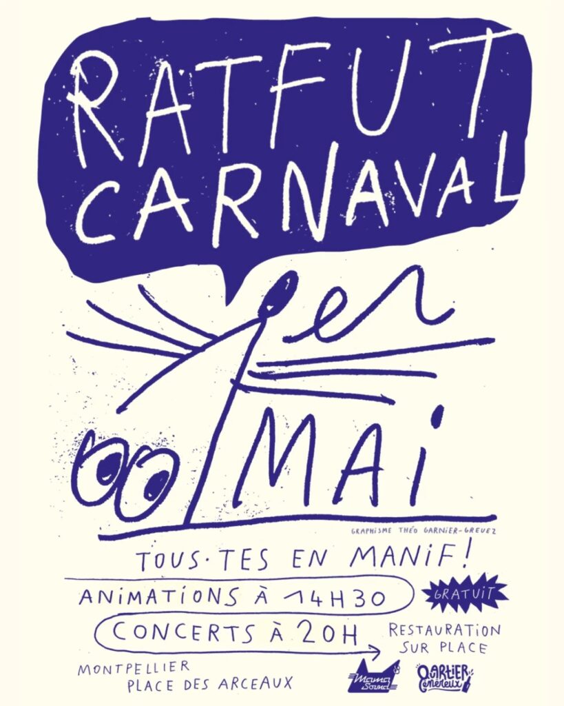 La journée prendra ensuite une tournure plus festive du côté de la place des Arceaux, où se tiendra la deuxième édition du Ratfut, un carnaval engagé porté par le Quartier Généreux et Mamasound. Dès le milieu d’après-midi, animations et stands investiront les lieux. La soirée se poursuivra sur une note musicale, avec plusieurs concerts puis un DJ set pour clôturer l’évènement.