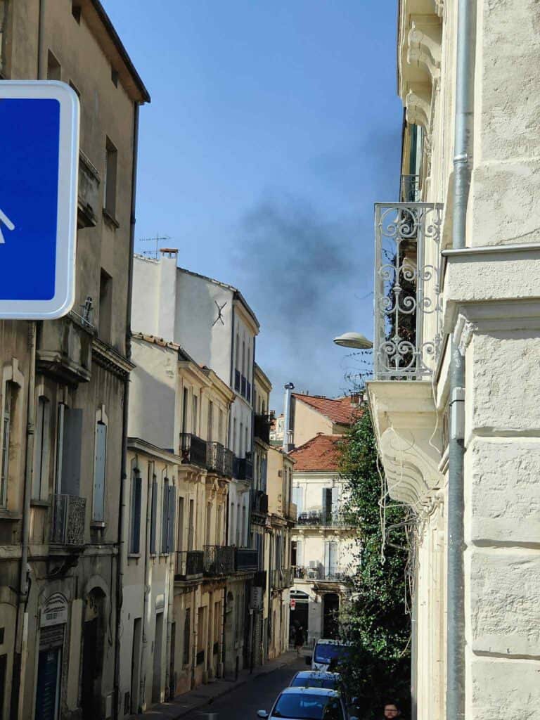 Une épaisse fumée est visible depuis la rue de Verdun, secteur gare Saint-Roch à Montpellier, ce vendredi 8 août dans l’après-midi. Une lectrice témoigne : « quand je suis sortie de l’arrière de la gare Saint-Roch, en direction du Polygone, j’ai vu cette grosse fumée noire. Elle est visible depuis la rue de Verdun ». On ne connait pas pour l’heure l’origine de cette fumée. Plus d’informations à venir. Photo ci-dessous :