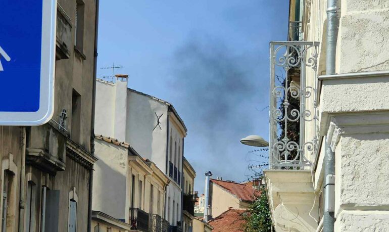 Une épaisse fumée est visible depuis la rue de Verdun, secteur gare Saint-Roch à Montpellier, ce vendredi 8 août dans l’après-midi. Une lectrice témoigne : « quand je suis sortie de l’arrière de la gare Saint-Roch, en direction du Polygone, j’ai vu cette grosse fumée noire. Elle est visible depuis la rue de Verdun ». On ne connait pas pour l’heure l’origine de cette fumée. Plus d’informations à venir. Photo ci-dessous :