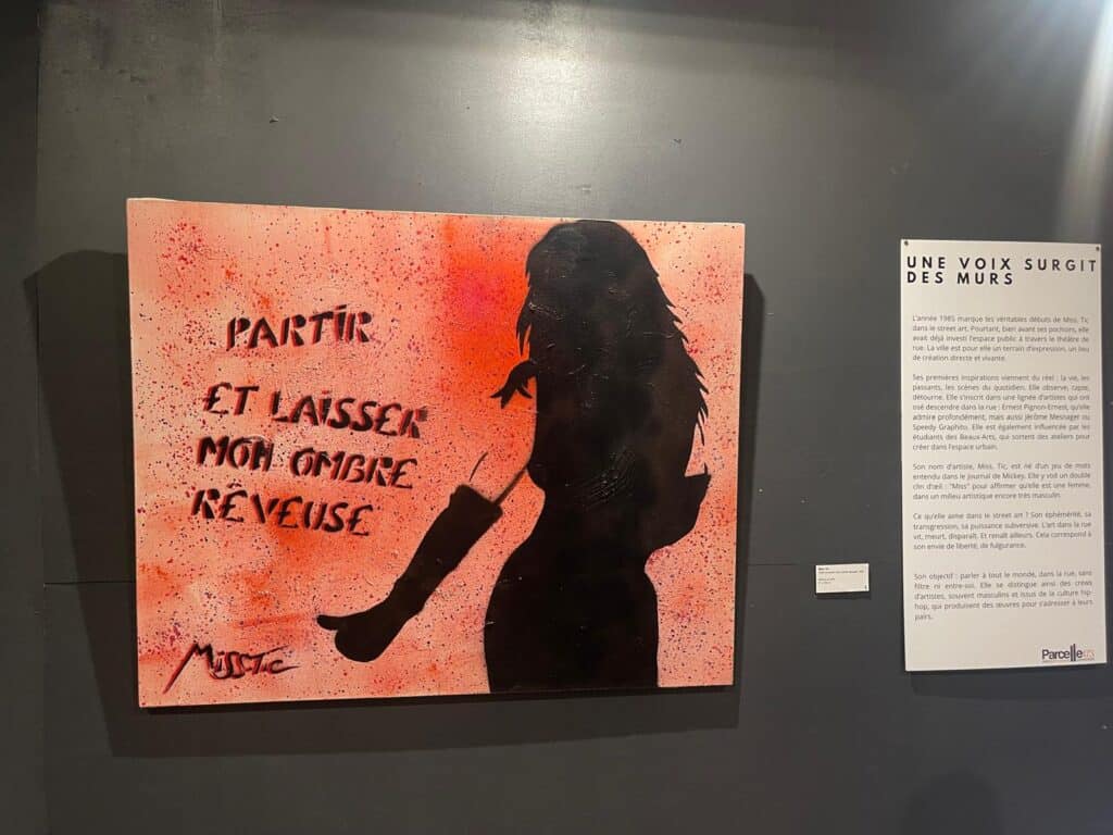 La street artiste Miss.Tic est à l’honneur au musée Parcelle473 à Montpellier. Les oeuvres de l’artiste sont reconnaissables par leurs silhouettes féminines percutantes et leurs phrases incisives. Cette exposition met à l’honneur les grands thèmes de son travail : la liberté, la féminité et l’insolence. Pour Laurent Rigail, co-fondateur du musée, cette exposition est un hommage à l’artiste, dont il était l’ami et le galeriste pendant 10 ans. « Lorsque j’ai ouvert le musée à Montpellier en 2022, j’ai proposé à Miss.Tic de lui dédier une exposition. C’est à ce moment-là qu’elle m’a annoncé qu’elle était affaiblie et les choses ne se sont pas faites. C’est le dernier échange que j’ai eu avec elle. Cette exposition me tient particulièrement à cœur, c’est une sorte d’hommage », a-t-il déclaré.