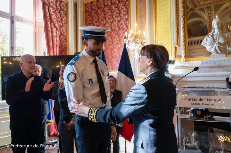 « J’ai eu l’honneur ce matin, devant les forces de sécurité réunies à la préfecture, de décerner au policier Azzouz N. la médaille d’argent pour acte de courage et de dévouement », indique le jeudi 29 janvier Chantal Mauchet, préfète de l’Hérault. Une médaille décernée au regard du comportement dont Nasri Azzouz a fait preuve le 9 janvier dernier en gare de Montpellier Saint-Roch (notre article).