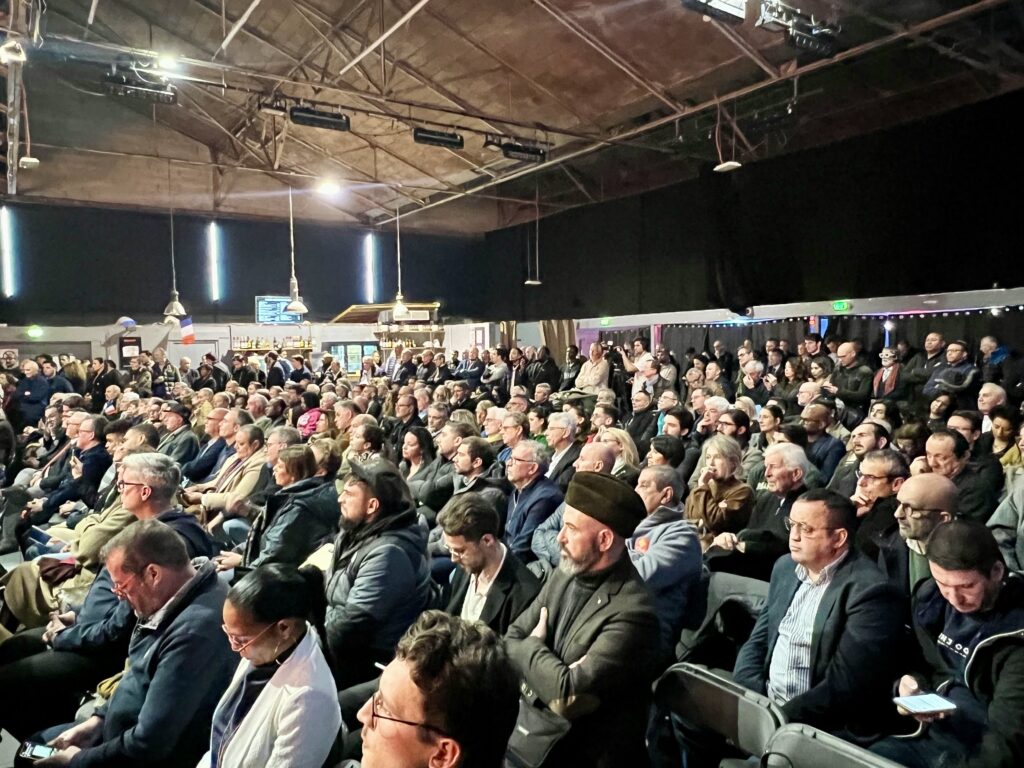 Au premier rang, plusieurs personnalités : Patricia Mirallès, l’ex-secrétaire d’État aux Anciens combattants, le sénateur et ancien maire de Castelnau-le-Lez Jean-Pierre Grand, Stéphanie Janin élue du groupe Alliance progressiste, ancienne première adjointe de Philippe Saurel, ou Jean-François Audrin, délégué Horizons Hérault.