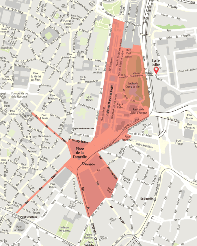 - Rue Boussairolles, de la rue Alfred Bruyas jusqu’à la place de la Comédie ;