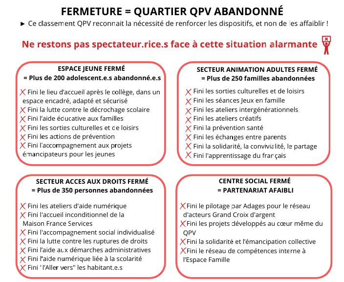 La fermeture de ces centres sociaux risque d’avoir de nombreuses conséquences sur les habitants de ces quartiers, selon les syndicats, certains représentants du personnel et salariés.