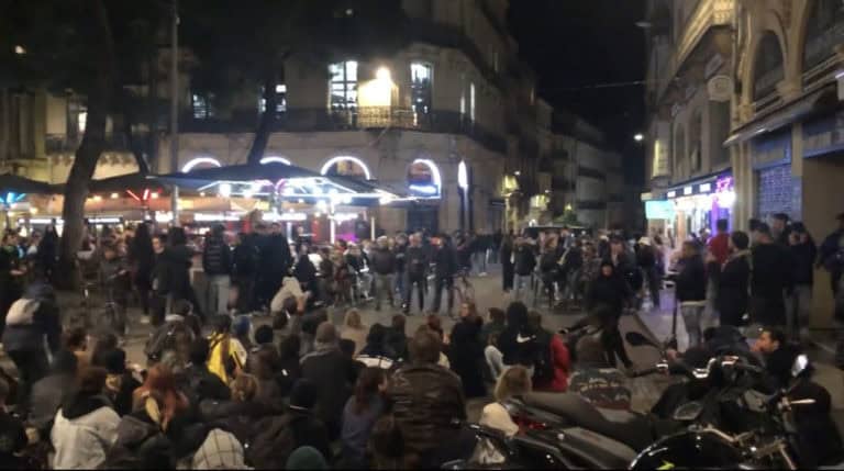 Une manifestation est en cours ce vendredi 24 mars à Montpellier. Plusieurs centaines de personnes sont mobilisées dans les rues du centre-ville. La plupart des manifestants sont des jeunes. Ils organisent un sitting en ce moment devant les terrasses de restaurant.