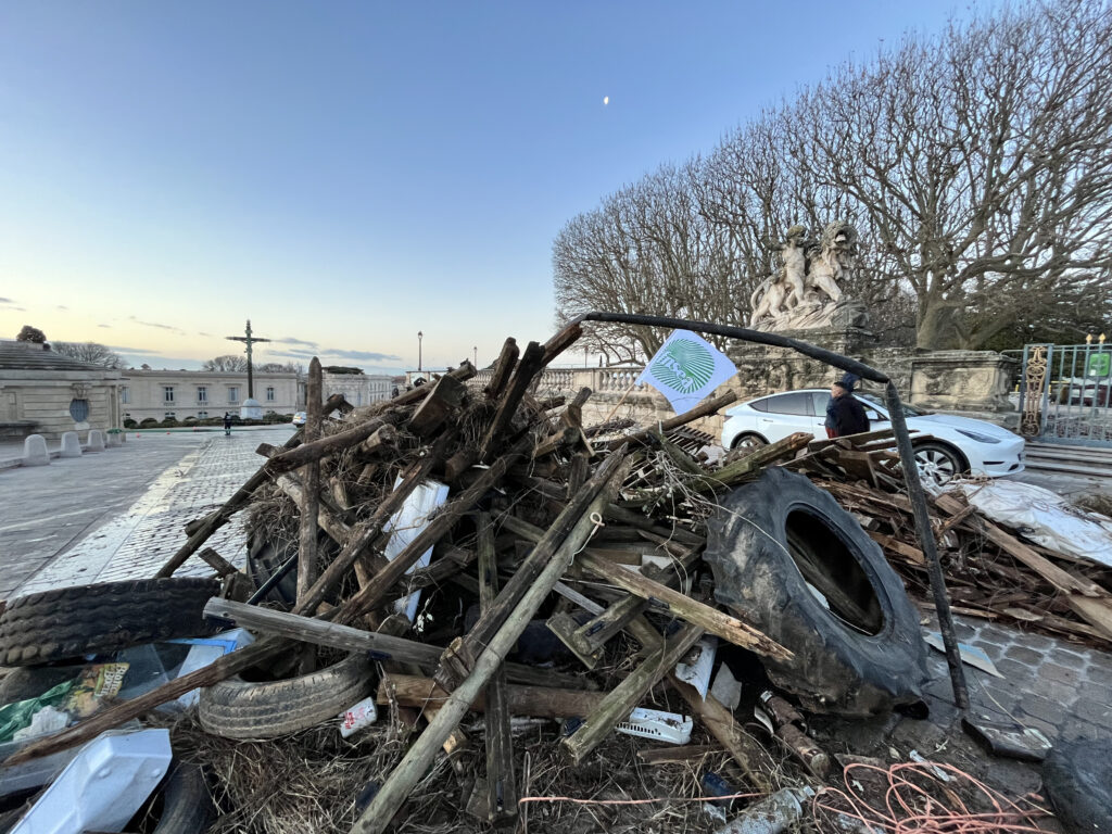 Ce vendredi matin, des agriculteurs se sont mobilisés dans le centre-ville de Montpellier pour exprimer leur opposition. Dès les premières heures de la journée, des déchets agricoles ainsi que des pneus ont été déposés devant l’Arc de Triomphe, bloquant la voie reliant la place du Peyrou au monument.