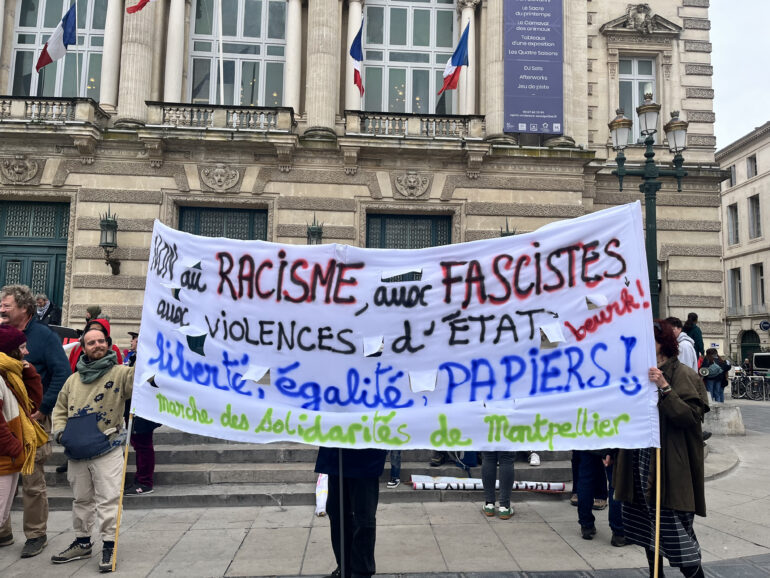 « Non ! Au racisme, aux fascistes et aux violences d’État », lit-on sur l’affiche de la Marche des Solidarités appelant à une manifestation unitaire ce samedi 14 mars à 14h30 sur la place de la Comédie à Montpellier. « Nous appelons à construire partout la mobilisation, dans chaque quartier, lieu de travail et d’étude et à manifester dans l’unité sur tout le territoire le samedi 14 mars contre le racisme, les fascistes et les violences d’état », poursuit le mouvement.