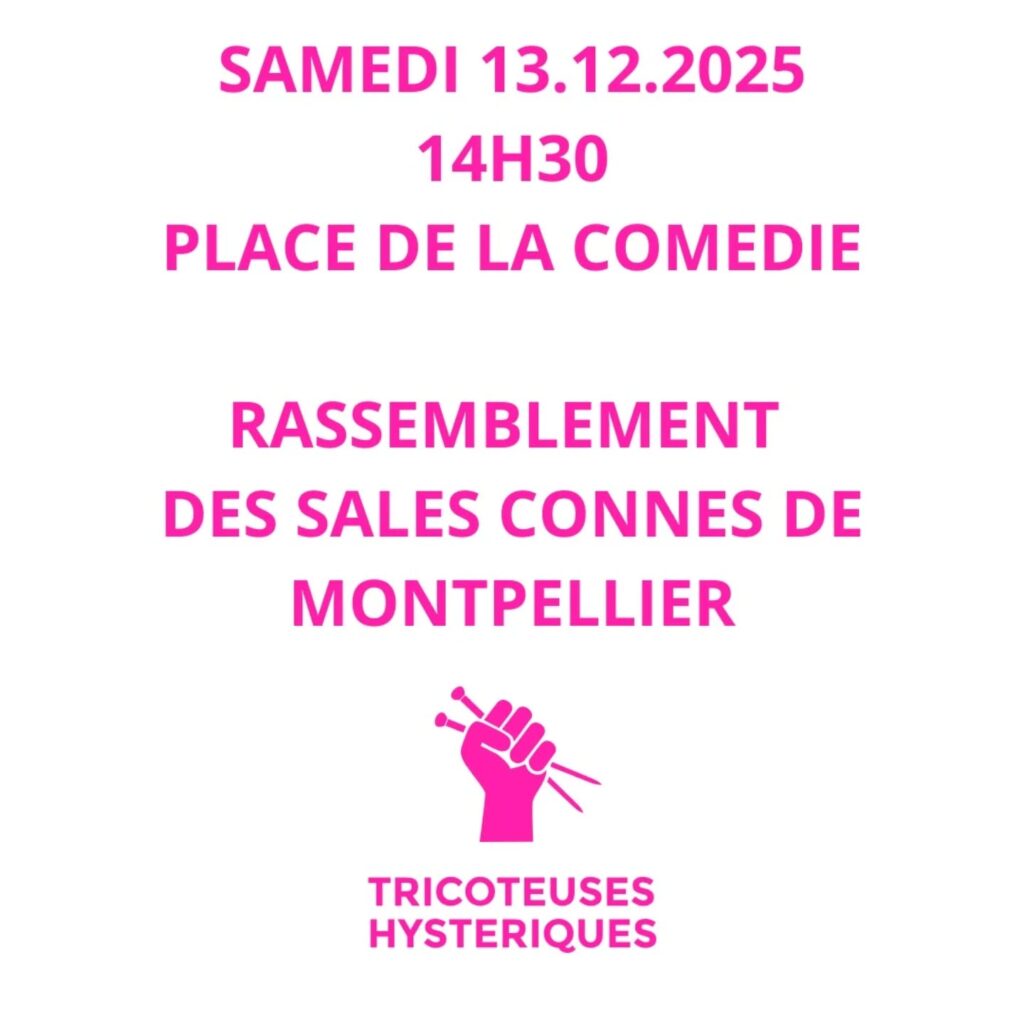 « Femmage aux sales connes d’hier et d’aujourd’hui ! », a affirmé l’association Les Tricoteuses hystériques sur leurs réseaux sociaux avant de donner rendez-vous sur la place de la Comédie pour rendre « femmage aux sales connes d’hier, qui nous permettent d’être les sales connes d’aujourd’hui ».