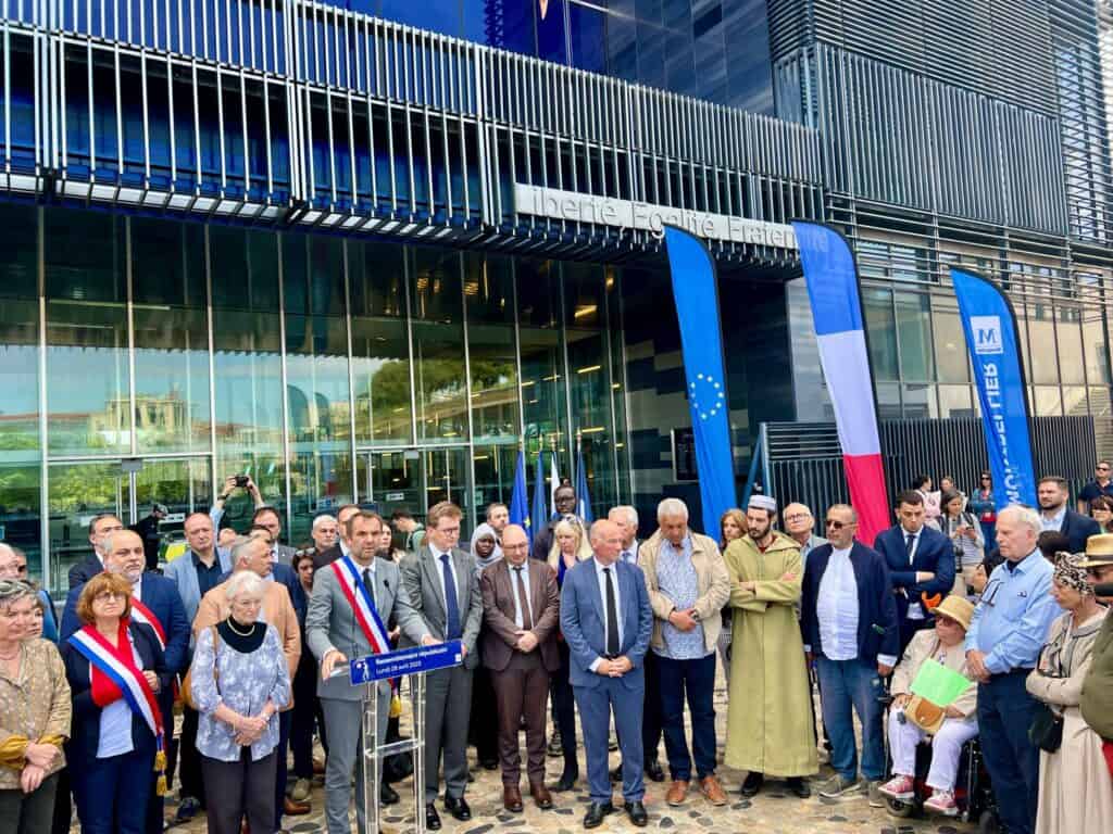 « Un acte anti-musulman », le qualificatif revient souvent au cours des discours du maire de Montpellier et du préfet de l’Hérault. « La mort d’un fidèle dans un lieu de culte est un crime contre nous tous et nos valeurs. Les lieux de pratique du culte, église, synagogue, mosquée, temple bouddhiste, etc. , sont des lieux garantis par cette liberté fondamentale de croire ou de ne pas croire », rappelle le maire au micro. L’hommage est appuyé par le préfet de l’Hérault : « Je vous dis tout mon soutien, dès cet acte horrible commis, des consignes extrêmement strictes ont été données aux policiers et gendarmes de protéger le culte. Vous êtes nos égaux, nous avons tous été très touchés par ce drame absolu ».