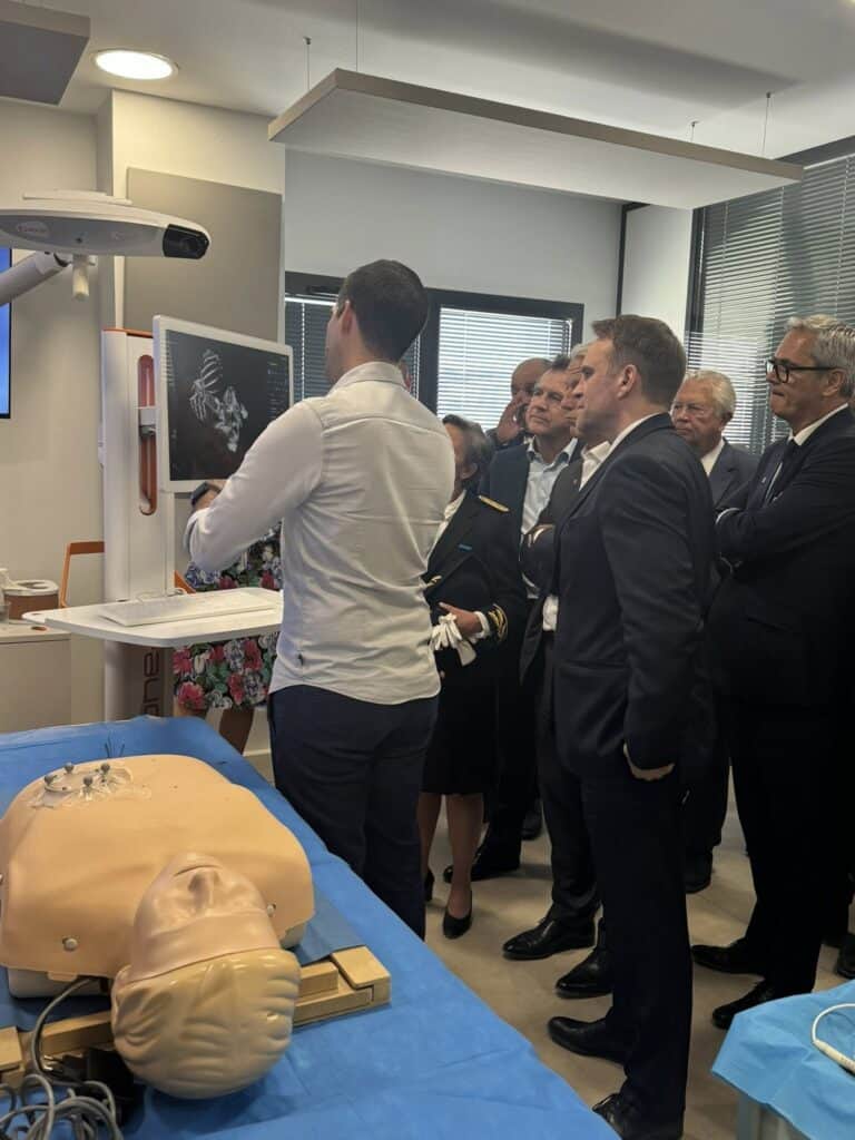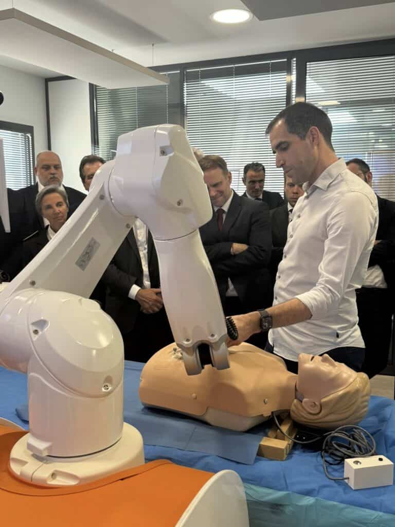 Dans l’après-midi, il s’est rendu sur le site de l’entreprise innovante Quantum Surgical, à Montpellier, accompagné de la sous-préfète, secrétaire générale de la préfecture de l’Hérault. QuantumSurgical développe le robot médical Epione, conçu pour assister les chirurgiens dans les interventions de destruction de tumeurs. Le ministre a assisté à une démonstration de cette technologie de pointe.