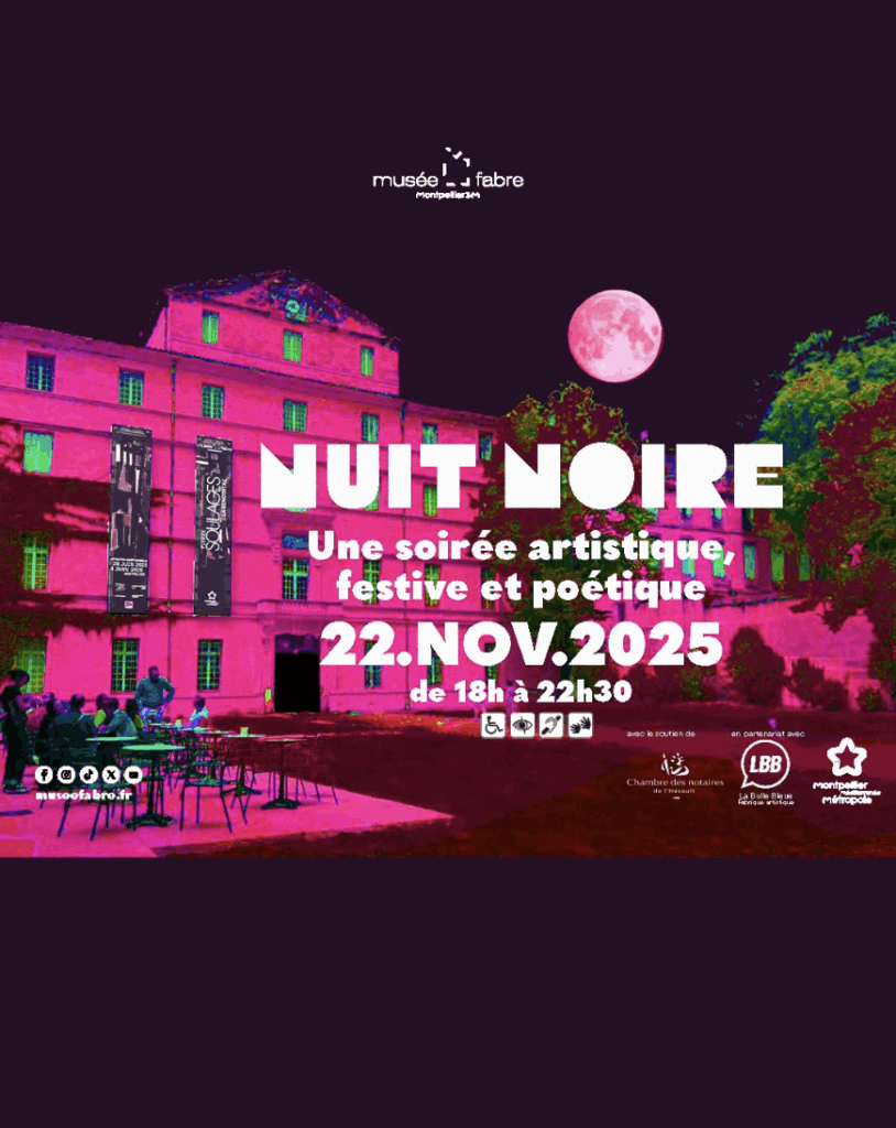 Ce samedi 22 novembre, les montpelliérain(e)s et visiteurs de passage ont rendez-vous au musée Fabre à Montpellier pour découvrir Nuit noire. Cette soirée prometteuse, de 18h à 22h30, prévoit des ateliers de découverte, des visites thématiques, des ambiances sonores et même un DJ Set !