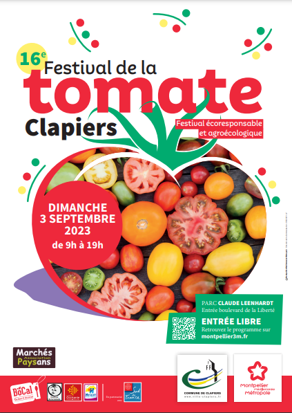 Le 16ème festival de la tomate se déroulera à Clapiers ce dimanche, 3 septembre 2023. De nombreuses animations vous seront proposées comme des ateliers culinaires, des recettes anti-gaspillage et des explications sur la richesse des sols vous seront détaillés par les nombreuses associations présentes !