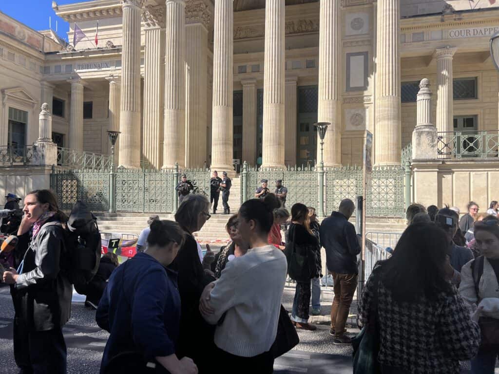 « La honte doit changer de camps »; « Gisèle, les femmes te remercient »; « Violeurs, la honte »; « Mon corps, mes choix », quelques écriteaux apportent leur soutien à Gisèle Pelicot, ce lundi 6 octobre 2025, devant la cour d’appel de Nîmes. « Seulement 6% des femmes victimes de violences sexuelles et sexistes portent plainte », déplore une militante des CIDFF, Centres d’information sur les droits des femmes et des familles, qui informent et accompagnent les femmes partout en France. Non loin, des « Tricoteuses Hystériques », collectif féministe, se sont aussi installées devant le tribunal avec leurs pelotes de laine et des slogans sur tricot.