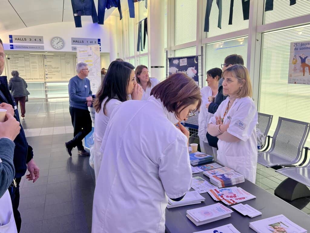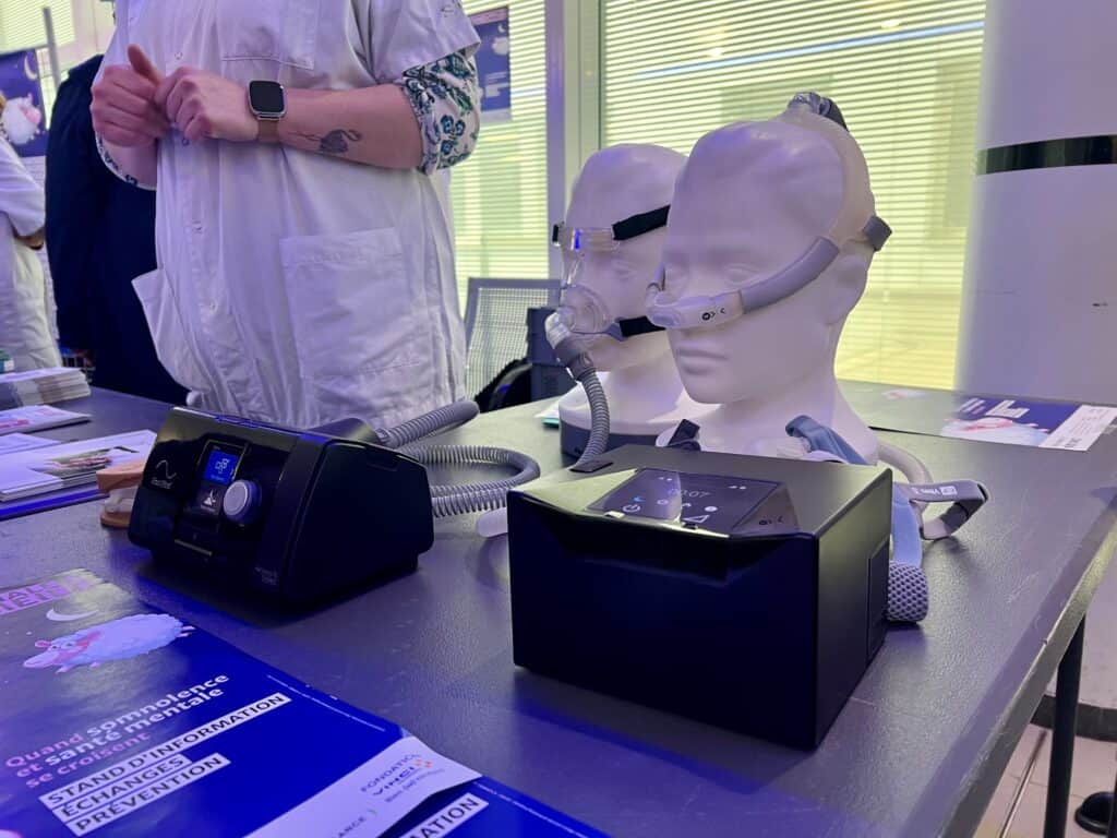 Le Dr Beatriz Abril est cheffe du service troubles du sommeil et acupuncture au CHU de Nîmes. « On a proposé ce stand dans le hall de l’hôpital pour informer les gens des différentes pathologies et rappeler que des traitements existent », insiste-t-elle. Un homme s’approche, il questionne les praticiens sur les solutions pour pallier l’apnée du sommeil. Devant lui, une machine à pression positive continue insuffle de l’air aux patients ou déclenche une respiration, pendant la nuit, afin de dormir normalement et tranquillement.